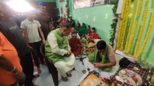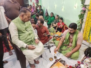 हरिद्वार, ज्वालापुर। गणपति महोत्सव समिति द्वारा आयोजित गणपति महोत्सव कार्यक्रम में कृषि एवं सैनिक कल्याण मंत्री गणेश जोशी ने गणपति पंडाल में पहुंचकर पूजा अर्चना कर भगवान गणेश जी का आशीर्वाद प्राप्त किया। गणपति दरबार में कृषि एवं सैनिक कल्याण मंत्री गणेश जोशी एवं पांडाल में बैठे भक्तजनो ने विधि विधान से भगवान गणेश जी की पूजा अर्चना कर उनका आशीर्वाद प्राप्त किया।