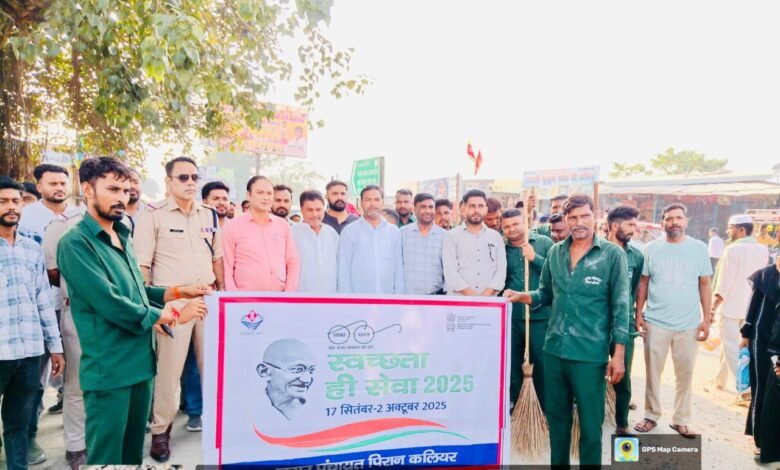 पिरान कलियर। नगर पंचायत पिरान कलियर की ओर से स्वच्छता ही सेवा 2025 अभियान के अंतर्गत “एक दिन, एक घंटा, एक साथ” विशेष स्वच्छता कार्यक्रम का आयोजन धूमधाम से किया गया। इस अवसर पर नगर पंचायत स्टाफ के साथ-साथ जिम्मेदार अधिकारी और स्थानीय प्रतिनिधियों ने बढ़-चढ़कर हिस्सा लिया और नगरवासियों को स्वच्छता का संदेश दिया। कार्यक्रम में अधिशासी अधिकारी श्री कुलदीप सिंह चौहान, थाना अध्यक्ष रविंद्र सिंह, अध्यक्ष प्रतिनिधि सलीम प्रधान, सभासद अमजद अली, राशिद अली, डॉ. शहजाद तथा नगर पंचायत के समस्त कर्मचारी मौजूद रहे। सभी ने मिलकर गलियों और सार्वजनिक स्थलों की सफाई कर लोगों को प्रेरित किया।