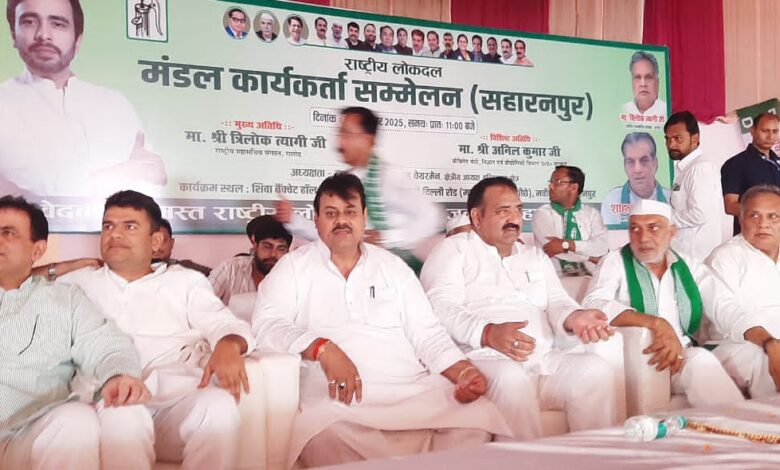 सहारनपुर। आवास विकास दिल्ली रोड पर शिवा वेंकट हाल में आयोजित रालोद के मंडलीय कार्यकर्ता सम्मेलन में बतौर मुख्य अतिथि पहुंचे राष्ट्रीय महासचिव संगठन त्रिलोक त्यागी का रालोद ने बड़ी गर्मजोशी से स्वागत किया। सम्मेलन को संबोधित करते हुए त्रिलोक त्यागी ने कहा कि सहारनपुर में भी रालोद बहुत मजबूती से आगे बढ़ रहा है। त्रिलोक त्यागी ने कहा कि राष्ट्रीय लोकदल की ताकत बढ़ रही है क्यों कि कार्यकर्ताओं का सम्मान रालोद में सर्वोपरि है। आप जैसे कर्मठ कार्यकर्ताओं के कारण ही रालोद पंचायत चुनाव में ताकत दिखाएगा। विशिष्ट अतिथि कैबिनेट मंत्री अनिल कुमार ने कहा कि आपका दुख दर्द हमारा है सबको न्याय मिलेगा।