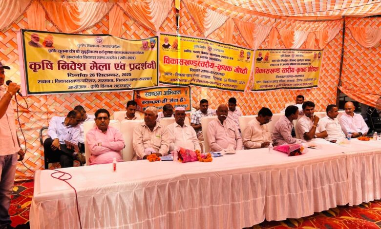 सहारनपुर। दिनांक 26-09-2025 को प्रातः 11.00 बजे से सहारनपुर जनपद के विकास खण्ड सरसावा के ब्लॉक प्रांगण मे कृषि विभाग की कृषि सूचना तन्त्र के सुदृढ़ीकरण एवं कृषक जागरूकता कार्यक्रम के अन्तर्गत विकास खण्ड स्तरीय रबी 2025 कृषि निवेश मेला एवं प्रदर्शनी तथा उत्तर प्रदेश मिलेट्स (श्री अन्न) पुनरोद्धार कार्यक्रम 2025-26 के अन्तर्गत प्रशिक्षण एवं क्षमतावर्धन हेतु विकास खण्ड स्तरीय कृषक प्रशिक्षण का भव्य आयोजन श्री अशोक कुमार जी, प्रगतिशील कृषक की अध्यक्षता मे प्रारम्भ हुआ। कार्यक्रम के विशिष्ट अतिथि श्री ताहिर हसन,ब्लॉक प्रमुख, विशेष अतिथि के रूप मे श्री अमरीश राणा जी, डायरेक्टर, श्री पुष्पेन्द्र जी, डायरेक्टर, सरसावा सहकारी चीनी मिल, श्री ओमकुमार प्रधान जी, मंडल अध्यक्ष, भाजपा, सरसावा देहात जी उपस्थित रहे। कार्यक्रम का सफल संचालन श्री एन. एस. बादल जी एवं छत्रपाल सिंह जी द्वारा संयुक्त रूप से किया गया।