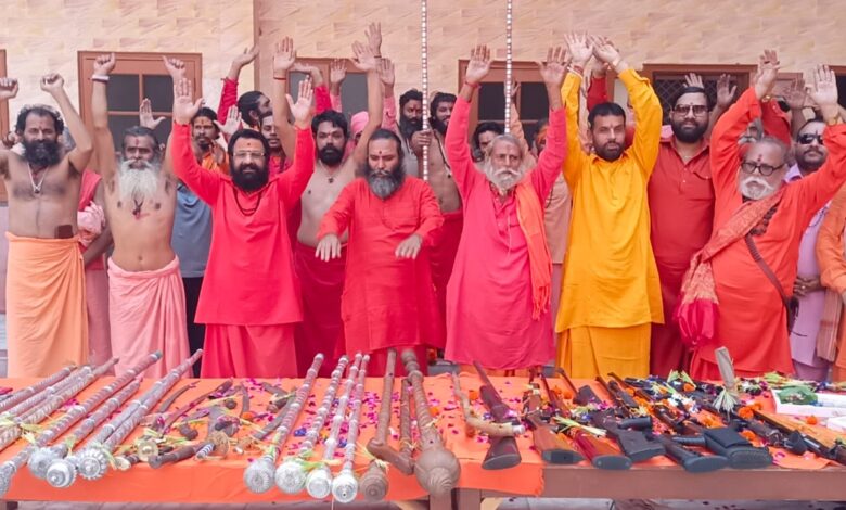 हरिद्वार। दशहरा पर्व पर श्री पंचायती अखाड़ा महानिर्वाणी में शस्त्र पूजन कर धर्म रक्षा का संकल्प दोहराया। अखाड़े में प्राचीन काल से रखे सूर्य प्रकाश और भैरव प्रकाश नामक भालों को देवता के रूप में पूजा गया। साथ ही आज के युग के हथियार और प्राचीन काल के कई प्रकार के शस्त्रों की पूजा मंत्रोच्चारण के साथ की गई। अखिल भारतीय अखाड़ा परिषद अध्यक्ष एवं श्री पंचायती महानिर्वाणी अखाड़ा के सचिव श्रीमंहत रवींद्र पुरी महाराज ने बताया कि दशहरे के दिन हम अपने देवताओं और शस्त्रों की पूजा करते हैं। आदि जगद्गुरु शंकराचार्य ने राष्ट्र की रक्षा के लिए शास्त्र और शस्त्र की परंपरा की स्थापना की थी।