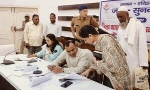 हरिद्वार। जनपदवासियों की समस्याओं का त्वरित निराकरण करने के उद्देश्य से जिलाधिकारी मयूर दीक्षित की अध्यक्षता में प्रत्येक सोमवार को जिला कार्यालय सभागार में जन सुनवाई कार्यक्रम आयोजित किया जा रहा है, जिसमें विभिन्न विभागों से संबंधित 65 शिकायतकर्ताओं ने अपनी समस्याएं दर्ज कराई गई जिसमें 28 समस्याओं का मौके पर निराकरण किया गया शेष समस्याओं हेतु संबंधित विभागों को तत्काल कार्यवाही हेतु प्रेषित किया गया। जनसुनवाई कार्यक्रम में राजस्व, भूमि विवाद, अतिक्रमण, जल भराव, पेयजल, विद्युत आदि से संबंधित समस्या दर्ज कराई गई। जनसुनवाई कार्यक्रम में प्राथी गुलशाना निवासी ग्राम बंदरजुड़ तहसील भगवानपुर ने खसरा न 335 – खाता नं 135 की भूमि पर मकान का निर्माण कर रहा है जिसको वन विभाग द्वारा रोका जा रहा है जिसको लेकर प्रार्थना पत्र दिया।रणधीर सिंह निवासी नाथनगर ज्वालापुर ने भूमि खाता संख्या 69 खसरा नं 211 (ग) में बदोबस्त अधिकारी का आदेश हुआ था, जिसको खतौनी में चढ़ाने के लिए प्रार्थना पत्र दिया। इनामु अली पुत्र अली हसन ग्राम हजारा ग्रंट ने खेत खसरा नं 859 ग्राम हजारा ग्रंट ब्लॉक बहादराबाद रुड़की की जो चक रोड के दक्षिण में स्थित रकबा कुल रकबा 6 बीघा है जिला पंचायत हरिद्वार ने रोड का निर्माण कराया था चक रोड से कोई भी पानी की निकासी के लिए नाली का निर्माण नहीं कराया गया था जिसके कारण प्राथी के भूमि में जलभराव हो गया था जिसको लेकर प्रार्थना पत्र दिया गया।