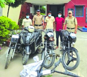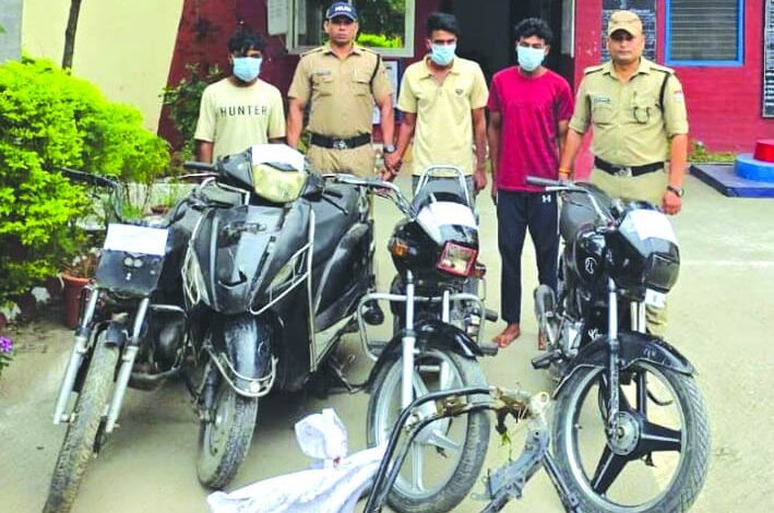 हरिद्वार। श्यामपुर थाना पुलिस ने अन्तर्राज्जीय वाहन चोर के तीन सदस्यों को गिरफ्तार किया है। पुलिस ने आरोपितों की निशानदेही पर चोरी के चार दुपहिया वाहन भी बरामद किए हैं। जानकारी के मुताबिक बीते रोज ग्राम कांगडी थाना श्यामपुर निवासी राजेन्द्र सिह निे अपनी बाइक चोरी के संबंध में पुलिस को तहरीर देकर मुकदमा दर्ज कराया था। वाहन चोर की तलाशी में पुलिस ने घटनास्थल के आसपास के सीसीटीवी खंगाले। पुलिस ने मुखबिरों को सक्रिय करने के साथ चैकिंग अभियान चलाया। 4.2 माईल स्टोन पर पुलिस टीम ने चैकिंग के दौरान एक बाइक पर सवार तीन व्यक्तियों रोककर चैक किया तो उनके पास से थाने में बाइक चोरी से संबंधित चोरी की बाईक बरामद हुई।