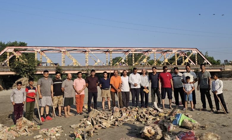 राष्ट्रीय स्वयंसेवक संघ रानीपुर नगर द्वारा स्वच्छता अभियान एवं विसर्जित व खंडित मूर्तियों का उचित निस्तारण किया
