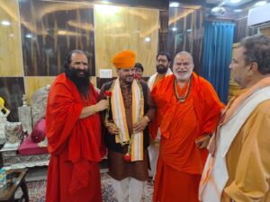 पूर्व सांसद ब्रजभूषण शरण सिंह ने कहा कि सनातन धर्म की परंपरांओं और संस्कृति का संरक्षण संवर्द्धन करते हुए राष्ट्र की एकता अखंडता को बनाए रखने में संत महापुरूषों की हमेशा अहम भूमिका रही है। उन्होंने कहा कि श्रीमहंत रविंद्रपुरी अखाड़ा परिषद अध्यक्ष के रूप में धर्म संस्कृति के उत्थान में निर्णायक भूमिका निभा रहे हैं। श्रीमहंत रविंद्रपुरी महाराज के सानिध्य में दिव्य और भव्य रूप से संपन्न हुए प्रयागराज महाकुंभ से पूरे विश्व में सनातन की प्रतिष्ठा और बढ़ी है। इस दौरान आचार्य महामंडलेश्वर ब्रह्मऋषि स्वामी चन्द्रमणी महाराज, महेंद्र त्रिपाठी, नीलेश कुमार, महेश बहुगौड़ा मौजूद रहे। ब्रजभूषण शरण सिंह ने श्री पंचायती अखाड़ा महानिर्वाणी के सचिव श्रीमहंत रविंद्रपुरी महाराज को भी कथा का निमंत्रण पत्र दिया और उनसे आशीर्वाद लिया। इस दौरान महंत सूर्यमोहन गिरी सहित अखाड़े के कई संत मौजूद रहे। श्रीपंच निर्वाणी अणी अखाड़े के महंत रामदास और उनकी शिष्या साध्वी राजमाता ने भी फूलमाला पहनाकर पूर्व सांसद ब्रजभूषण शरण सिंह को आशीर्वाद दिया। इसके बाद ब्रजभूषण शरण सिंह चेतन ज्योति आश्रम पहुंचे और स्वामी ऋषिश्वरानन्द व अन्य संतों को कथा का निमंत्रण दिया। स्वामी ऋषिश्वरानन्द ने कथा का निमंत्रण स्वीकार करते हुए शॉल ओढ़ाकर ब्रजभूषण शरण सिंह का स्वागत किया। इस दौरान महामंडलेश्वर स्वामी आदियोगी पुरी, बाबा हठयोगी, महंत भूपेंद्र गिरी, महंत विष्णुदास, महंत गोविंददास, महंत दुर्गादास, स्वामी ज्ञानानंद, स्वामी सुतिक्ष्ण मुनि, स्वामी रविदेव शास्त्री, स्वामी कृष्णानंद, स्वामी शिवम महंत सहित कई संत महंत मौजूद रहे।