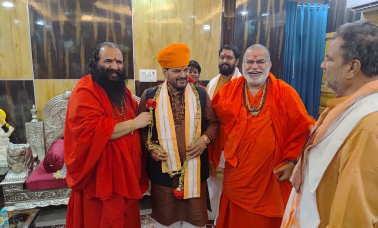 हरिद्वार। उत्तराखंड प्रवास पर आए भारतीय कुश्ती संघ के पूर्व अध्यक्ष एवं पूर्व सांसद ब्रजभूषण शरण सिंह ने मंगलवार को हरिद्वार के कई प्रमुख संतों से भेंट कर आशीर्वाद लिया और गोंडा में आयोजित की जा रही कथा में शामिल होने का निमंत्रण दिया। हरिद्वार पहुंचे पूर्व संासद ब्रजभूषण शरण सिह ने सन्यास रोड़ स्थित सूरत गिरी बंगला घाट पर गंगा पूजन और दक्ष महादेव मंदिर में दुग्धाभिषेक भी किया। पूजा अर्चना के बाद ब्रजभूषण शरण सिंह ने निरंजनी अखाड़े पहुंचकर अखिल भारतीय अखाड़ा परिषद अध्यक्ष श्रीमहंत रविंद्रपुरी महाराज से भेंट की और उन्हें उत्तर प्रदेश के गांेंडा में आयोजित की जा रही सनातन ज्ञान विज्ञान छात्र उत्थान राष्ट्रीय कथा में शामिल होने का निमंत्रण दिया और आशीर्वाद लिया। श्रीमहंत रविंद्रपुरी महाराज ने ब्रजभूषण शरण सिंह को मां मनसा देवी की चुनरी ओढ़ाकर और मूर्ति भेंटकर आशीर्वाद देते हुए कहा कि राजनीति के साथ समाजसेवा में भी योगदान कर रहे पूर्व सांसद ब्रजभूषण शरण सिंह का संतों के प्रति सेवा भाव प्रशंसनीय है।