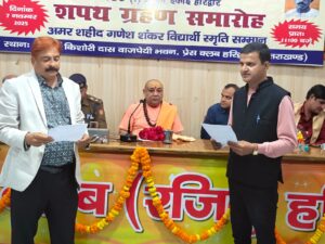 कार्यक्रम के अध्यक्ष जगद्गुरु शंकराचार्य स्वामी राजराजेश्वराश्रम, मुख्य अतिथि जिलाधिकारी मयूर दीक्षित एवं विशिष्ट अतिथि वरिष्ठ पुलिस अधीक्षक प्रमेन्द्र डोभाल ने नवनिर्वाचित कार्यकारिणी सदस्यों अध्यक्ष- नरेश गुप्ता, उपाध्यक्ष-राधिका नागरथ, विकास कुमार झा,, महामंत्री- संदीप रावत, कोषाध्यक्ष-सचिन कुमार, वरिष्ठ सचिव-जोगेंद्र मावी सचिव- प्रतिभा वर्मा व सोमेश खत्री संगठन सचिव-आशीष मिश्रा, प्रचार सचिव-नितिन राणा, समारोह सचिव-संजीव शर्मा विधि सलाहकार- सुरेंद्र शर्मा एवं सदस्य कार्यकारिणी सदस्यों में अनिल चौधरी, स्वरूप पुरी, शिवांग अग्रवाल, ठाकुर शैलेंद्र सिंह, संतोष कुमार, कुमकुम शर्मा, अनूप कुमार, शमशेर बहादुर, नीलम सैनी, निशा शर्मा, दिव्यांश शर्मा, अम्बरीष कुमार, वैभव भाटिया, करण खुराना, विश्वजीत सिंह ने पद एवं गोपनीयता की शपथ दिलाई। वहीं मनोज कपिल, डीएवी प्रधानाचार्य, शांतनु मांगलिक, स्केटिंग चैंपियन, अवनीश प्रेमी, पत्रकारिता, स्वरूप पुरी, पत्रकारिता, अंकुर अग्रवाल, रोटरी क्लब, रानीपुर, कल्पना गहलोत, यातायात प्रबंधन के लिए अमर शहीद गणेश शंकर विद्यार्थी सम्मान पुरस्कार से सम्मानित किया गया।