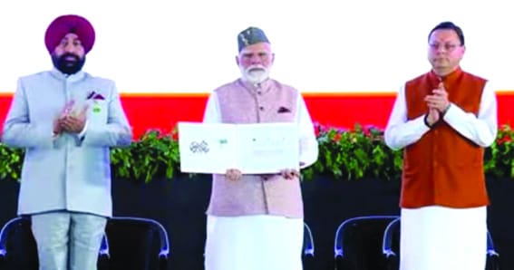देहरादून। प्रधानमंत्री नरेन्द्र मोदी ने आज उत्तराखंड के रजत जयंती के मुख्य समारोह में प्रदेश के 28 हजार किसानों के खाते में पुनर्गठित मौसम आधारित फसल बीमा योजना की 63 करोड़ की धनराशि स्थानांतरित की। इसके बाद प्रधानमंत्री ने उत्तराखंड उदय पर आधारित दो डाक टिकट जारी किए। इसके अलावा प्रधानमंत्री ने गौरवशाली अतीत सशक्त वर्तमान और सुनहरा भविष्य शीर्षक से प्रकाशित कॉफी टेबल बुक का विमोचन और सौंग व जमरानी जल विद्युत परियोजनाओं के साथ ही करीब 8, 260 करोड की विभिन्न योजनाओं का भी लोकार्पण व शिलान्यास किया। इस दौरान उत्तराखंड की विकास यात्रा से संबधित फिल्म का भी प्रदर्शन किया गया। उत्तराखंड के गौरवपूर्ण रजत जयंती समारोह में बड़ी संख्या में लोगों की उपस्थिति प्रधानमंत्री पर भरोसे की मिसाल पेश कर गया। कार्यक्रम की शुरूआत में प्रधानमंत्री का मुख्यमंत्री पुष्कर सिंह धामी ने शॉल ओढ़ाकर स्वागत किया। मुख्यमंत्री ने प्रधानमंत्री को बाबा केदारनाथ के शीतकालीन स्थल ओंकारेश्वर मंदिर ऊखीमठ का मॉडल भेंट किया। इसके बाद प्रधानमंत्री की उपस्थिति में उत्तराखंड नागरिक उड्डयन के सचिव सचिन कर्वें व एयरपोर्ट ऑथरिटी के अध्यक्ष विपिन कुमार ने समझौता ज्ञापन एक-दूसरे को स्थानांतरित किया। इस समझौते से उत्तराखंड के सीमांत जनपद पिथौरागढ़ में स्थित नैनी सैनी हवाई पट्टी को पूर्ण रूप से एयरपोर्ट अथॉरिटी ऑफ इंडिया ने अधिग्रहण कर लिया है। इसके बाद नैनी सैनी हवाई पट्टी से नियमित उडानों के साथ ही यात्रा सीमाओं का भी विस्तार होगा और आदि कैलाश व ओम पर्वत लिपुलेख जैसी यात्राओं को नई गति मिलेगी, साथ ही कैलाश मानसरोवर यात्रा के संभावित प्रवेश द्वार विकसित हो सकेंगे।