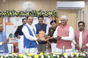 सहारनपुर। उप मुख्यमंत्री उ0प्र0 श्री केशव प्रसाद मौर्य जी ने जनपद भ्रमण कार्यक्रम के दौरान सर्किट हाउस सभागार में अधिकारियों के साथ समीक्षा बैठक की। जिलाधिकारी ने माननीय उप मुख्यमंत्री जी को काष्ठ से निर्मित गणेश जी की मूर्ति भेंट की। श्री केशव प्रसाद मौर्य जी ने सरकार द्वारा चलाई जा रही योजनाओं के तहत प्रमुखता से ग्राम्य विकास, मनरेगा, प्रधानमंत्री एवं मुख्यमंत्री आवास योजना, खाद्य प्रसंस्करण आदि की बिन्दुवार समीक्षा की। माननीय उप मुख्यमंत्री जी ने कहा कि सहारनपुर में विकास की अपार संभावनाएं है। सभी अधिकारी संवेदनशील होकर कार्य करें और सहारनपुर को नई ऊंचाईयों पर पहुंचाएं।