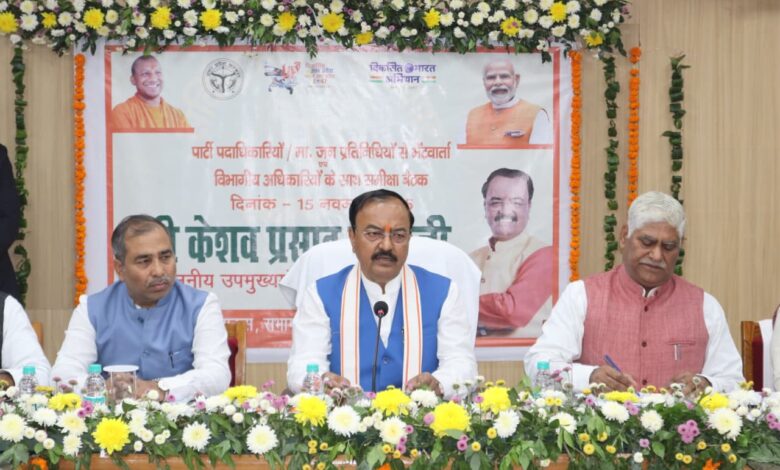 श्री केशव प्रसाद मौर्य ने निर्देश दिए कि आजादी के अमृत महोत्सव के तहत निर्मित अमृत सरोवरों एवं अमृत वनों की निरंतर समीक्षा की जाए। उन्होने कहा कि पीएम एवं सीएम आवास योजना के तहत सभी को पक्का मकान मिल सके। इस संबंध में जनप्रतिनिधियों से भी समन्वय किया जाए। उन्होंने कहा कि जनप्रतिनिधियों के अनुभवों का भी लाभ उठाया जाए। उन्होने निर्देश दिए कि जिले की शिकायतों को जिले स्तर पर ही निस्तारित किया जाए। उप मुख्यमंत्री ने कहा कि देश की आधी आबादी का प्रतिनिधित्व कर रहीं मातृशक्ति को आर्थिक रूप से समृद्ध किया जाए।