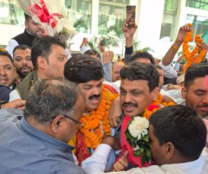 रुडकी। उत्तराखंड कांग्रेस कमेटी का प्रदेश अध्यक्ष नियुक्त किए जाने पर गणेश गोदियाल का प्रथम बार जोलीग्रांट एयरपोर्ट पहुंचने पर कांग्रेस के प्रदेश महामंत्री सचिन गुप्ता द्वारा फूल-मालाएं पहनकर गर्म जोशी से स्वागत किया गया। सैकडों की संख्या में समर्थकों के साथ एयरपोर्ट पहुंचे कांग्रेस के प्रदेश महामंत्री सचिन गुप्ता ने प्रदेश अध्यक्ष को नई जिम्मेदारी मिलने पर बधाई देते हुए कहा कि वह पूरी लगन और मेहनत के साथ पार्टी की मजबूती के लिए कार्य करेंगे तथा प्रदेश अध्यक्ष के हाथों को मजबूत करेंगें।