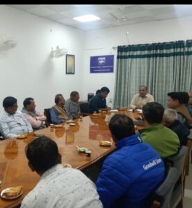 हरिद्वार। जिला अधिकारी के धर्म नगरी स्वच्छता क्लीन जनपद अभियान को पंख लगाने का कार्य भेल के नगर प्रशासक कर रहे हैं। उपनगरी को स्वच्छ रखने एवं धर्म नगरी को क्लीन जनपद बनाने में अपना योगदान देते आ रहे है। उसी क्रम मे भेल के नगर प्रशासक संजय पंवार की अध्यक्षता में संपदा विभाग के सभागार में भेल के व्यापारियों के साथ बैठक आहूत की गई। बैठक में व्यापारियों की समस्याओं के समाधान के लिए संपदा विभाग के अधिकारियों को जिम्मेदारी सौंपी। इस बैठक मे भेल संपदा विभाग के अधिकारी और उपनगरी के व्यापारी की बड़ी संख्या मे उपस्थिति रहे।