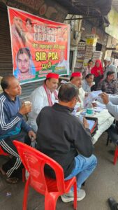 सहारनपुर। निर्वाचन आयोग के विशेष गहन पुनरीक्षण अभियान के तहत सहारनपुर नगर विधानसभा 03 में SIR पी डी ए प्रहरी कैंप लगाए जा रहे है। उन्होंने कहा सहारनपुर नगर की सम्मानित जनता हमारे लिए सर्वोपरि है टीम टिंकू अरोड़ा के सभी सदस्य पिछले लगातार कई दिनों से फॉर्म भरने का कार्य लगातार हर क्षेत्र में कर रहे हैं और आगे भी फार्म भरने का कार्य 4 दिसंबर तक जारी रहेगा वोटर को फॉर्म भरने में कठिनाई का सामना करना पड़ रहा है जिसे लेकर समाजवादी पार्टी नगर विधानसभा में अलग-अलग क्षेत्र में सपा नेता अभिषेक टिंकू अरोड़ा के द्वारा कैंप लगाए जा रहे हैं।