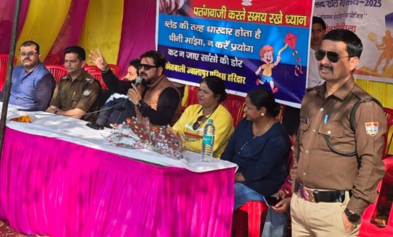 हरिद्वार। पुलिस चाइनीज मांझे को लेकर अभियान के साथ-साथ लोगों को जागरूकता कर रही है। चाइनीज मांझा से लोगों की जान पर खतरा बना रहता है और चाइनीज मांझे से दुर्घटना को रोकने के लिए ज्वालापुर पुलिस द्वारा जागरूकता अभियान चल रही है। वहीं वरिष्ठ पुलिस अधीक्षक हरिद्वार के आदेश अनुपालन में प्रभारी निरीक्षक कोतवाली ज्वालापुर कुंदन सिंह राणा के निर्देश पर कोतवाली ज्वालापुर क्षेत्र में राजकीय इण्टर कालेज ज्वालापुर में चौकी प्रभारी रेल समीप पाण्डेय द्वारा जन जागरुकता कार्यक्रम के दौरान बैनर लगाकर चाईनीज मांझे के दुष्प्रभाव व उससे होने वाली दुर्घटनाओं के सम्बन्ध में स्कूल के छात्रा–छात्राओं व अन्य आम नागरिको को सम्बोधित किया गया।