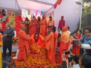 हरिद्वार। जापान के संत आदित्यानंद पुरी को श्री पंचायती अखाड़ा निरंजनी के महामंडलेश्वर की पदवी प्रदान की गयी। अखिल भारतीय अखाड़ा परिषद एवं मनसा देवी मंदिर ट्रस्ट के अध्यक्ष श्रीमहंत रविंद्रपुरी महाराज के संयोजन में एसएमजेएन कालेज के प्रांगण में आयोजित भव्य पट्टाभिषेक समारोह में संत समाज ने वैदिक परंपरा अनुसार चादर विधि और पुष्प वर्षा कर स्वामी आदित्यानंद पुरी का अखाड़े के महामंडलेश्वर पद पर अभिषेक किया। महामंडलेश्वर स्वामी आदित्यानंद पुरी को आशीर्वाद प्रदान करते हुए अखाड़ा परिषद अध्यक्ष श्रीमहंत रविंद्रपुरी महाराज ने कहा कि अखाड़ा परंपरा के अनुसार महामंडलेश्वर पद सनातन धर्म में त्याग, तपस्या और गुरु कृपा का सर्वाेच्च प्रतीक माना जाने वाला पद है। लेकिन यह केवल एक धार्मिक सम्मान नहीं, बल्कि धर्म रक्षा, समाज के मार्गदर्शन और आध्यात्मिक चेतना के प्रसार का दायित्व भी है।
