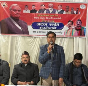 हरिद्वार। भारत रत्न और पूर्व प्रधानमंत्री श्रद्धेय अटल बिहारी वाजपेयी जी की जन्म शताब्दी के अवसर पर विधानसभा रानीपुर में अटल स्मृति सम्मेलन का शिवालिक नगर में आयोजन किया गया। कार्यक्रम में बड़ी संख्या में कार्यकर्ता और गणमान्य लोग मौजूद रहे। सम्मेलन के मुख्य अतिथि रानीपुर विधायक आदेश चौहान और मुख्य वक्ता पूर्व प्रदेश महामंत्री मयंक गुप्ता रहे। कार्यक्रम की शुरुआत श्रद्धेय अटल बिहारी वाजपेयी जी की प्रतिमा पर पुष्प अर्पित कर की गई।