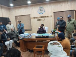 ग्रामीणों के आने जाने के रास्ते बंद कर दिए गए हैं। लकड़ी भी बिनने नहीं दी जा रही है। रेंजर को तुरंत हटाकर निष्पक्ष जांच कर कड़ी कार्रवाई की जानी चाहिए। उन्होंने कहा कि यदि जल्द कार्रवाई नहीं होती है तो आंदोलन किया जाएगा और उच्चाधिकारियों से मिलकर कार्रवाई की मांग की जाएगी। डीएफओ स्वप्निल अनिरुद्ध ने ग्रामीणों को जांच कराकर समस्याओं के समाधान का आश्वासन दिया। उन्होंने कहा कि सभी शिकायतों की जांच एसडीओ की अध्यक्षता में विभागीय स्तर पर कराई जाएगी और जो भी तथ्य सामने आएंगे। उनके अनुसार कार्रवाई की जाएगी। प्रदर्शन करने वालांें मंे बुरहान, गय्यूर, वाजिद असलम, सद्दाम, उल्फत, सुन्दरी, फारूख, विजयपाल सहित सैकड़ों लोग शामिल रहे।