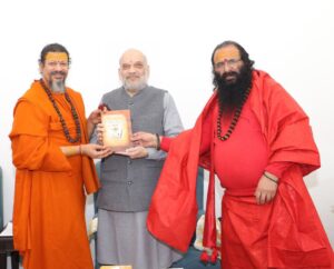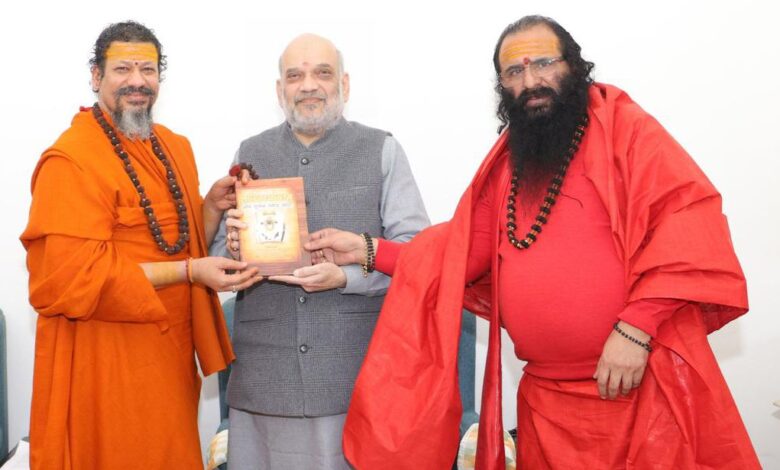 गृह मंत्री अमित शाह से मिले स्वामी कैलाशानंद गिरी व श्रीमहंत रविंद्रपुरी