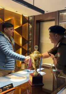 गणतंत्र दिवस के अवसर पर उत्तराखण्ड की सबसे बेहतर कोतवाली के लिए सम्मानित होने के पश्चात कोतवाली ज्वालापुर पुलिस की टीम ट्रॉफी लेकर वरिष्ठ पुलिस अधीक्षक हरिद्वार के कैंप ऑफिस में पहुंची।टीम से मुलाकात करते हुए वरिष्ठ पुलिस अधीक्षक प्रमेन्द्र सिंह डोबाल ने उन्हे बधाई दी। तथा गुड इंट्री व 2500/- के नगद ईनाम की घोषणा की गई। इस दौरान वरिष्ठ पुलिस अधीक्षक द्वारा अन्य थाना प्रभारियों को भी अपना प्रदर्शन सुधारने का संदेश दिया गया।