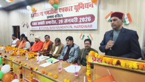हरिद्वार। उत्तराखंड श्रमजीवी पत्रकार यूनियन का रजत जयंती समारोह आयोजित किया गया। प्रेस क्लब सभागार में आयोजित पत्रकार यूनियन के रजत जयंती समारोह में पत्रकारिता के मूल्यों, सामाजिक सरोकारों और भविष्य की दिशा पर व्यापक विचार-विमर्श हुआ। समारोह का शुभारंभ दीप प्रज्वलन एवं मां शारदा की स्तुति के साथ किया गया। कार्यक्रम की अध्यक्षता सुप्रसिद्ध कथावाचक रविदेव शास्त्री ने की। मुख्य अतिथि के रूप में रानीपुर विधायक आदेश चौहान तथा विशिष्ट अतिथि के रूप में उत्तराखंड श्रमजीवी पत्रकार यूनियन के प्रदेश अध्यक्ष अरुण शर्मा उपस्थित रहे। कार्यक्रम का संचालन रजनीकांत शुक्ला ने किया। जिलाध्यक्ष संजय आर्य ने यूनियन के गठन से लेकर वर्तमान तक की यात्रा पर प्रकाश डालते हुए कहा कि उत्तराखंड श्रमजीवी पत्रकार यूनियन ने सदैव जमीनी स्तर पर काम करने वाले पत्रकारों की आवाज़ को बुलंद किया है। कार्यक्रम संयोजक डा.हिमांशु द्विवेदी ने सभी अतिथियों, पत्रकार साथियों और गणमान्य नागरिकों का पटका पहनाकर स्वागत किया।