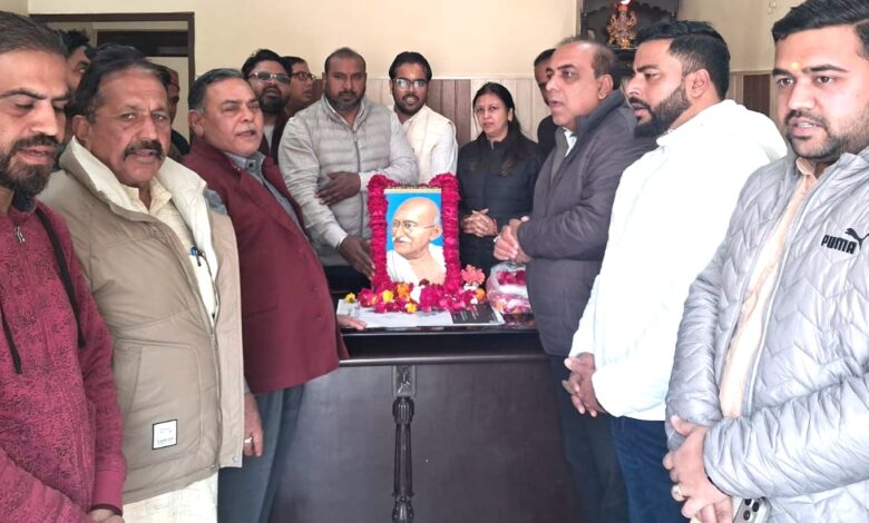 कांग्रेस द्वारा महात्मा गांधी जी की पुण्यतिथि पर पुष्पांजलि अर्पित कर श्रद्धांजलि दी
