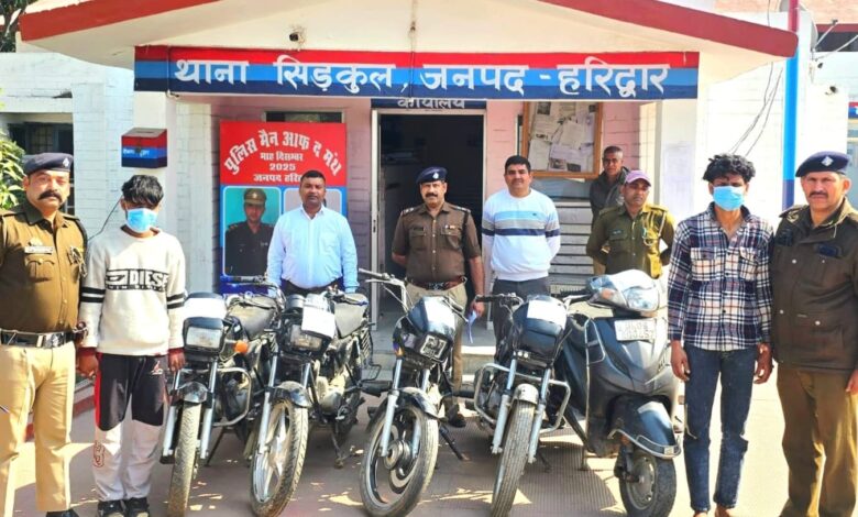 हरिद्वार। थाना सिडकुल क्षेत्र में लगातार हो रही दोपहिया वाहन चोरियों पर आखिरकार हरिद्वार पुलिस का शिकंजा कस ही गया। वरिष्ठ पुलिस अधीक्षक हरिद्वार प्रमेन्द्र सिंह डोबाल की सख्ती और स्पष्ट निर्देशों का असर जमीन पर दिखाई दिया, जब सिडकुल पुलिस ने सिलसिलेवार वाहन चोरियों का सफल खुलासा करते हुए दो शातिर चोरों को गिरफ्तार कर लिया। पिछले कई दिनों से क्षेत्र में एक के बाद एक दोपहिया वाहन चोरी की घटनाओं से आमजन में रोष और असुरक्षा का माहौल था। मामले को गंभीरता से लेते हुए एसएसपी हरिद्वार ने चोरी की घटनाओं पर प्रभावी अंकुश लगाने तथा आरोपितों की शीघ्र गिरफ्तारी के निर्देश दिए। निर्देशों के क्रम में थाना सिडकुल पुलिस टीम ने घटनास्थलों का सूक्ष्म निरीक्षण कर संदिग्ध गतिविधियों का विश्लेषण किया और क्राइम ग्राफ तैयार कर तकनीकी व मानवीय सूचनाओं को जोड़ा। लगातार प्रयासों के फलस्वरूप दिनांक 08 फरवरी 2026 को गोपनीय सूचना के आधार पर दवा चौक सिडकुल के पास चेकिंग के दौरान पुलिस टीम ने दो संदिग्ध युवकों आयुष पुत्र गंगाराम एवं रोहित पुत्र शिवराम को हिरासत में लिया।