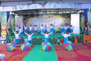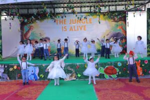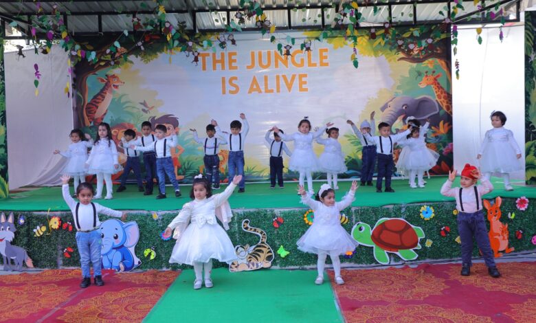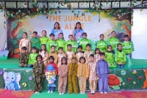 कार्यक्रम का शुभारंभ मुख्य अतिथियों द्वारा दीप प्रज्ज्वलन के साथ हुआ। स्कूल कैंपस को घने पेड़ों, विभिन्न जानवरों और जंगल की कलाकृतियों से इस तरह सजाया गया था कि पूरा परिसर जीवंत वन्य प्रदेश जैसा प्रतीत हो रहा था।