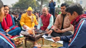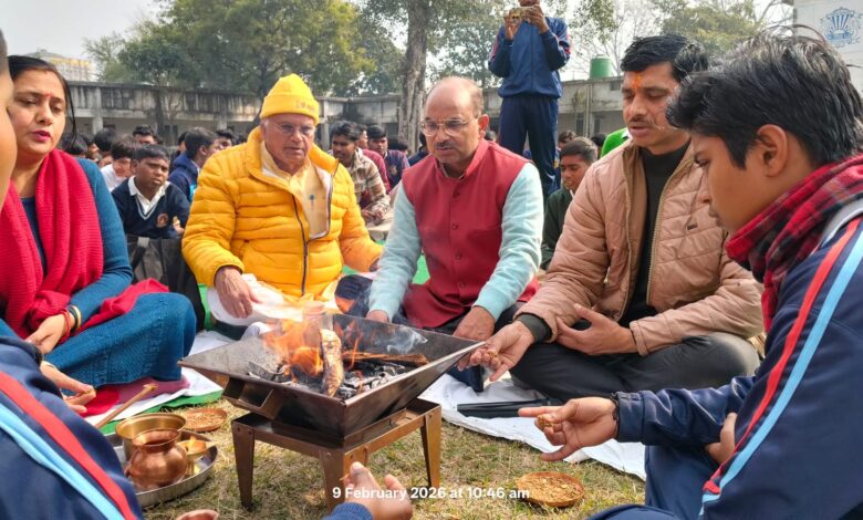 बोर्ड परीक्षार्थियों की सफलता के लिए विद्यालय में किया हवन यज्ञ का आयोजन