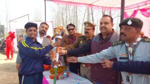 नागल। कस्बे के जीटी रोड़ स्थित तेजस इंटरनेशनल स्कूल में वार्षिक खेल प्रतियोगिता यानि एनुअल स्पोर्ट्स डे पर एक दिवसीय स्काउट कैंप का भव्य आयोजन किया गया। जिसका शुभारंभ नागल थाना प्रभारी राजकुमार चौहान, एनआरआई इंजी. सुशील कुमार शांति, मैनेजर कपिल डावर, सभापति मानसिंह सैनी व ग्रंथी बाबा गुलजार सिंह चीमा द्वारा संयुक्त रूप से मां सरस्वती के चित्र सम्मुख दीप प्रज्वलित कर किया गया। कार्यक्रम के शुभारंभ में छात्रा अवनी चौधरी के नेतृत्व में माँ सरस्वती की वंदना की गई तत्पश्चात मशाल जलाकर खेल प्रतियोगिता का शुभारंभ किया गया। सांस्कृतिक कार्यक्रम में बच्चों ने सरस्वती वंदना, गणेश वंदना, “मेरे घर राम आए हैं”, “आरंभ है प्रचंड”, पीटी प्रदर्शन व डंबल शो आदि की शानदार प्रस्तुतियां देकर अतिथियों को भाव-विभोर कर दिया। खेल प्रतियोगिताओं में किंगडम गार्डन क्षेत्र में बाधा दौड़, लेमन स्पून रेस, बकेट रेस व थ्री लेग रेस आदि खेलों में बच्चों ने बढ़-चढ़कर हिस्सा लिया और मेडल अपने नाम किए साथ ही प्राइमरी एवं सीनियर सेक्शन में 100 मीटर, 200 मीटर, 400 मीटर दौड़, गोला फेंक, चक्का फेंक एवं लंबी कूद जैसी प्रतियोगिताओं में शानदार प्रदर्शन कर अपनी प्रतिभा का लोहा मनवाया।