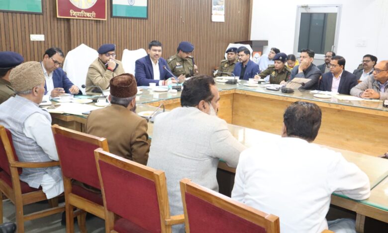 जिलाधिकारी ने धार्मिक गुरूओं के माध्यम से आस-पास स्थित मस्जिद में नमाज अदा करने अपील की तथा उन्होने कहा कि परम्परागत तरीके से मनाये जाये त्यौहार इसके साथ ही उच्चतम न्यायालय के आवाज के दृष्टिगत दिये गये निर्देशों के अक्षरशः पालन करने को कहा। उन्होने कहा कि बोर्ड परीक्षाओं के दृष्टिगत भी अभ्यर्थियों को कोई असुविधा न हो इसका ध्यान रखा जाये। उन्होने धार्मिक गुरूओं से अपील की कि मस्जिद की क्षमता के अनुसार ही नमाज अदा हो जिससे नमाजियों को अनावश्यक रूप से कोई दिक्कत न आये। इस सम्बन्ध में पूर्व में ही धार्मिक गुरूओं द्वारा जानकारी भी दे दी जाये। वरिष्ठ पुलिस अधीक्षक श्री अभिनन्दन ने कहा कि शांति को भंग करने वालो को चिन्हित कर उनकी जानकारी पुलिस को दी जाये ताकि इन पर कार्यवाही की जा सके। उन्होने सोशल मीडिया को लेकर कहा कि बिना सोचे समझे संदेश को फारवर्ड न करें। सभ्रान्तजनो अनुरोध किया कि नवयुवको को भी इस सम्बन्ध में जानकारी दी जाये। महाशिवरात्रि पर्व पर सभी शिवालयों में साफ-सफाई, विद्युत व्यवस्था, बेरिकेटिंग एवं कैमरों की व्यवस्था दुरूस्त रहे। उन्होने सभी अधिकारियों से मन्दिर प्रशासन के साथ बैठक करने के निर्देश दिये। मन्दिर मेें फिसलन से बचने के लिए मेट बिछवाने को कहा। प्रमुख मन्दिरों में स्वास्थ्य विभाग की टीमें भी उपस्थित रहें। आबकारी विभाग को निश्चित समय तक दुकानों को खोलने एवं बन्द करने, ओवर रेटिंग न हो तथा त्यौहारों के दृष्टिगत ज्वाइंट टीम बनाकर निरीक्षण करने के निर्देश दिये गये। खाद्य सुरक्षा विभाग त्यौहारों के दृष्टिगत आमजनों को शुद्ध खाद्य पदार्थ मिल सके इसके लिए प्रवर्तन कार्यवाही में तेजी लाने के साथ ही जनजागरूकता अभियान चलाया जाये। वरिष्ठ पुलिस अधीक्षक ने सभी आबकारी दुकानों पर कैमरे चालू रखने के निर्देश दिये।