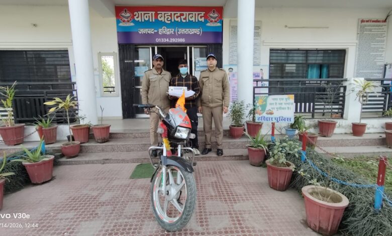 हरिद्वार। कोतवाली बहादराबाद पुलिस ने चोरी की बाइक व तमंचे समेत एक आरोपी को गिरफ्तार किया है। पुलिस के अनुसार आरोपी किसी बड़ी घटना को अंजाम देने की फिराक में था। शुक्रवार की रात एसएसआई नितिन बिष्ट, एसआई अमित नौटियाल सहयोगी पुलिसकर्मियों कांस्टेबल प्रीतम तोमर, कांस्टेबल बलवंत व पीआरडी अमजद मलिक के साथ पथरी रोह पुल के पास चेकिंग कर रहे थे।