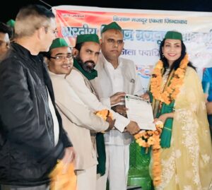 हरिद्वार। भारतीय किसान मजदूर उत्थान यूनियन के प्रदेश अध्यक्ष इरफान भट्टी ने एडवोकेट अर्चना शुक्ला को संगठन की महिला मोर्चा की प्रदेश अध्यक्ष नियुक्त किया है। नवनियुक्त महिला अध्यक्ष एडवोकेट अर्चना शुक्ला का फूलमाला पहनाकर स्वागत करते हुए इरफान अली भट्टी ने कहा कि अर्चना शुक्ला महिला किसानों को संगठन से जोड़ने का काम करेंगी। महिला शक्ति के बल पर संगठन किसानों की लड़ाई को मजबूती से लड़ेगा। इरफान अली भट्टी ने कहा कि कहा कि भारतीय किसान मजदूर उत्थान यूनियन किसानों की समस्याओं के समाधान को लेकर लगातार संघर्ष कर रहा है। फसलों की सिंचाई के लिए मु्फ्त पानी और बिजली के साथ, फसलों का उचित दाम मिले। गन्ना किसानों का बकाया भुगतान जल्द से जल्द से किया जाए।
