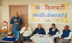 सहारनपुर। साहित्यिक संस्था ‘विभावरी’ द्वारा ‘होली के रंग कविताओं के संग’ कार्यक्रम का आयोजन संस्था उपाध्यक्ष प्रत्यूष जैन के कोर्ट रोड स्थित आवास पर किया गया। मां शारदा के चित्र के समक्ष दीप प्रज्वलन तथा डॉ आर पी सारस्वत की सरस्वती वंदना से गोष्ठी का शुभारंभ हुआ। कवि वीरेश त्यागी ने कुछ यूुं कहा- ‘होली जले विकार की, राम-नाम के संग/तन-मन श्री रघुनाथ के, रँग में डालो रंग’। विनोद भृंग ने पढ़ा, ‘ऐसी होली खेलना, मित्र जनों के संग/हर मुखड़े पर खिल उठे, देश प्रेम के रंग’।