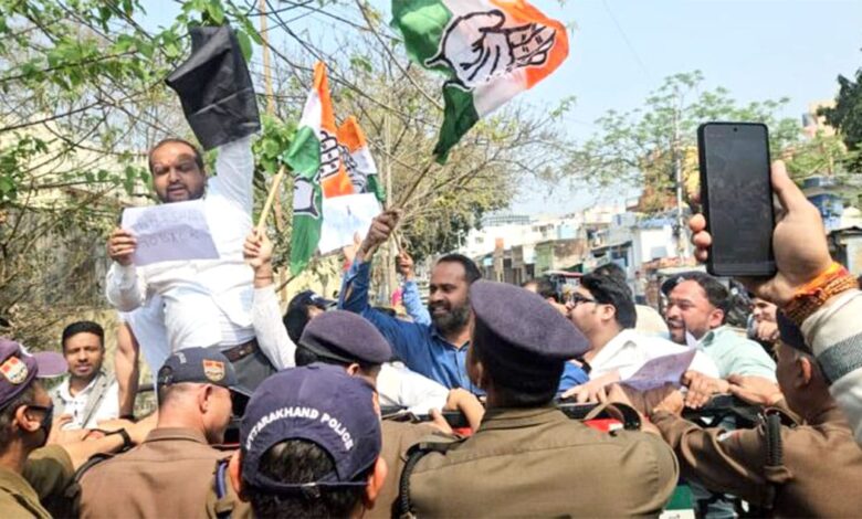 हरिद्वार। राज्य सरकार के चार वर्ष पूरे होने के अवसर पर आयोजित विभिन्न कार्यों में शिरकत करने हरिद्वार पहुंचे केंद्रीय गृह मंत्री अमित शाह के खिलाफ जिला महानगर कांग्रेस कमेटी न विरोध प्रदर्शन कर काले झण्डे दिखाने का प्रयास किया। पुलिस ने कांग्रेस कार्यकर्ताओं को तुलसी चौक पर ही गिरफ्तार कर लिया। विरोध प्रदर्शन को संबोधित करते हुए जिला महानगर कांग्रेस कमेटी अध्यक्ष अमन गर्ग व स्वतंत्रता सेनानी उत्तराधिकारी प्रकोष्ठ अध्यक्ष मुरली मनोहर ने कहा कि देश की संप्रभुता पर अमेरिका द्वारा लगातार हमला किया जा रहा है। बावजूद इसके सरकार क्यों चुप हैं, आखिर कब तक भारत को अमेरिका चलाने का काम करेगा? अमित शाह को इस बात को स्पष्ट करना चाहिए। उन्होंने सवाल करते हुए कहा कि अंकिता भण्डारी हत्याकांड के वीआईपी की गिरफ्तारी कब तक होगी तथा उनकी पार्टी की सरकार द्वारा स्वामी अविमुक्तेश्वरानंद सरस्वती का अपमान क्यों किया जा रहा है।