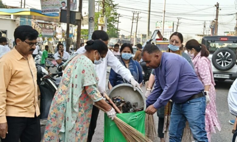 सफाई कर्मियों की हड़ताल के चलते मेयर व नगर आयुक्त के नेतृत्व में निगम प्रशासन उतरा सड़कों पर