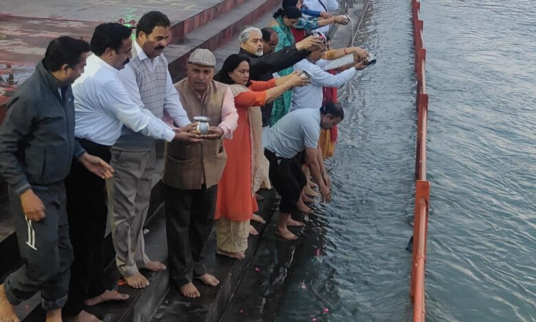 हरिद्वार। प्रातः 6:07 पर संस्कार भारती महानगर रुड़की इकाई के समस्त कार्यकर्ता श्री लक्ष्मी नारायण मंदिर गंग नहर बाय किनारे पर एकत्रित हुए तथा सभी ने चैत्र शुक्ल प्रतिपदा विक्रम संवत 2083 के प्रथम दिन अर्थात नव वर्ष पर भगवान भास्कर को अर्घ्य के रूप में अपनी भावांजलि अर्पित किया। सभी कार्यकर्ताओं ने एक दूसरे को तिलक लगाकर मिष्ठान खिलाकर नव वर्ष की शुभकामनाएं दी, ईश्वर से प्रार्थना किया कि हमारा नव वर्ष हम सभी रुड़की वासियों के लिए तथा देशवासियों के लिए मंगलमय हो। इकाई के संरक्षक डॉक्टर अशोक शर्मा आर्य ने अपने संबोधन में कहां कि राष्ट्र में सब तरफ प्रेम तथा अपनत्व का भाव हो तथा राष्ट्र निरंतर उन्नति की ओर अग्रसर हो। प्रांत साहित्य विधा संयोजक डॉ राजकुमार उपाध्याय ने कहां कि आज ही के दिन भगवान राम का राज्याभिषेक हुआ था इसलिए हम सबके लिए यह अत्यंत पवित्र दिन है।