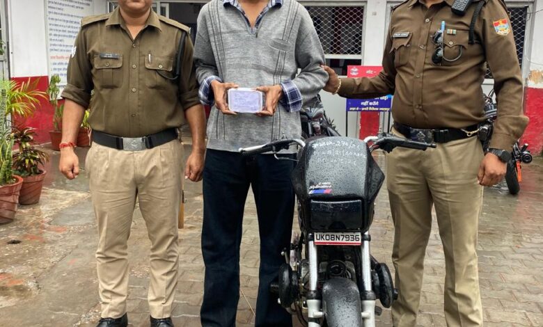 हरिद्वार। ज्वालापुर कोतवाली पुलिस ने एक नशा तस्कर को गिरफ्तार कर स्मैक बरामद की है। एसएसपी के निर्देश पर नशा तस्करी रोकने के लिए चलाए जा रहे अभियान के तहत थाना कोतवाली स्तर पर टीमों का गठन किया गया है। निर्देशों के अनुपालन में एसआई समीप पाण्डेय ने सहयोगी पुलिसकर्मियों कांस्टेबल महावीर व कर्म के साथ ऊंचे पुल के समीप दुर्गा चौक पर चेकिंग के दौरान बाइक सवार फरहान उर्फ़ नन्नू पुत्र जावेद अली निवासी सोनिया बस्ती ज्वालापुर को रोककर तलाशी ली तो उसके कब्जे से 4.96 स्मैक बरामद हुई। स्मैक बरामद होने पर पुलिस ने एनडीपीएस एक्ट के तहत मुकद्मा दर्ज कर उसे गिरफ्तार कर लिया। साथ ही बाइक को भी सीज कर दिया।