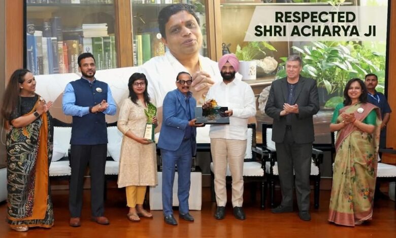 विश्व आयुर्वेद रत्न सम्मान से सम्मानित हुए आचार्य बालकृष्ण
