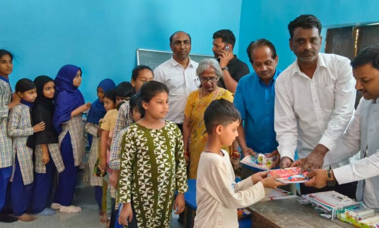 पूर्व मेयर गौरव गोयल ने राजकीय विद्यालय में छात्र-छात्राओं को बांटी पाठ्य सामग्री