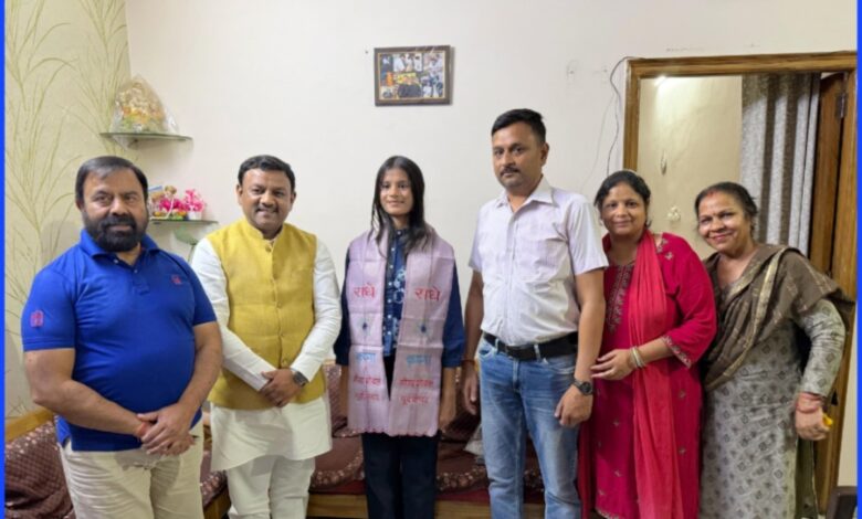 हाई स्कूल में शानदार अंक प्राप्त करने पर छात्र-छात्रा का किया सम्मान