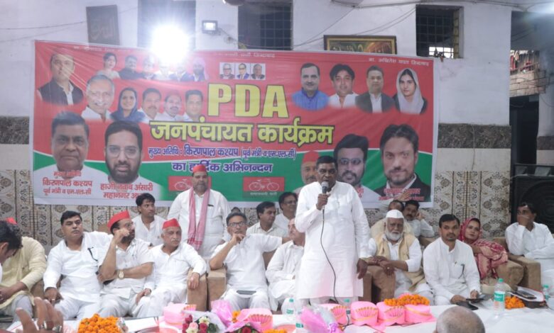 सहारनपुर। प्रदेश के पूर्व मंत्री एवं एमएलसी किरणपाल कश्यप ने कहा कि समाजवादी पार्टी पीडीए पंचायत के माध्यम से जन संवाद स्थापित कर हर उसे व्यक्ति की समस्या को सुन रही है जिसको सरकार बुनियादी सुविधाओं से वंचित कर रही है और यही हमारी लड़ाई है कि गरीब पिछड़े और शोषित समाज को उनका हक मिल सके। पीडीए पंचायत के जनपद प्रभारी एवं एमएलसी किरणपाल कश्यप पुल कम्बोहान स्थित एक पैलेस में आयोजित पंचायत को संबोधित कर रहे थे। उन्होंने कहा कि पार्टी सुप्रीमो एवं पीडीए जननायक अखिलेश यादव के नेतृत्व में यह लड़ाई लड़ी जा रही है जिससे आमजन सफल बनाने का काम करें। जिला अध्यक्ष चौधरी अब्दुल वाहिद एवं महानगर अध्यक्ष हाजी नवाब अंसारी ने कहा कि भाजपा सरकार पूरी तरह जन विरोधी हो चली है और कोई उनके खिलाफ आवाज उठाने का काम करता है उसका शोषण किया जा रहा है जिस किसी रूप में बर्दाश्त नहीं किया जाएगा। पूर्व सांसद हाजी फजलुर रहमान ने कहा कि पीडीए पंचायत की सफलता और आम जन की सहभागिता से भाजपा घबराकर हमारे लोगों का उत्पीड़न कर रही है लेकिन जननायक अखिलेश यादव के नेतृत्व में चल रहे इस अभियान को कोई रोक नहीं सकता।