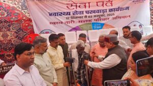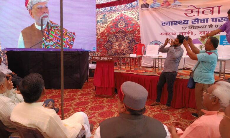 हरिद्वार। भारत के यशस्वी प्रधानमंत्री नरेंद्र मोदी के जन्मदिन के अवसर पर प्रारंभ हुए “स्वस्थ नारी- सशक्त परिवार अभियान” के अंतर्गत चिकित्सा स्वास्थ्य एवं परिवार कल्याण विभाग, जनपद हरिद्वार द्वारा आयोजित ‘सेवा पर्व – स्वास्थ्य सेवा पखवाड़ा’ कार्यक्रम उद्घाटन मुख्य अतिथि राष्ट्रीय सह कोषाध्यक्ष एवं राज्यसभा सांसद नरेश बंसल और विशिष्ट अतिथि जिला अध्यक्ष भाजपा आशुतोष शर्मा नगर विधायक मदन कौशिक, रानीपुर विधायक आदेश चौहान, हरिद्वार महापौर किरण जैसल, दर्जाधारी राज्य मंत्री राज्य मंत्री डॉ जयपाल सिंह चौहान, राज्य मंत्री उत्तराखंड ओम प्रकाश जमदग्नि, ओबीसी आयोग उपाध्यक्ष सुनील सैनी , सेवा पखवाड़े के संयोजक लव शर्मा ने फीता काटकर किया। इस अवसर पर स्वास्थ्य विभाग हरिद्वार की ओर से निशुल्क स्वास्थ्य कैंप और रक्तदान शिविर का आयोजन किया गया। जिसमें सैकड़ो युवाओं ने रक्तदान कर प्रधानमंत्री नरेंद्र मोदी को जन्म दिवस की बधाई और शुभकामनाएं दी।