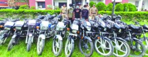 हरिद्वार। बहादराबाद थाना पुलिस के बड़ी सफलता हाथ लगी है। पुलिस ने अन्तर्राज्यीय वाहन चोर गिरोह का पर्दाफाश करते हुए तीन शातिर सदस्यों को गिरफ्तार किया है। जबकि उनका एक साथी फरार है। पुलिस ने आरोपितों की निशानदेही पर 20 चोरी की बाईकें बरामद की हैं। आरोपितों ने चोरी की बाईकों को छिपाने के लिए खण्डर का अपना ठिकाना बनाया हुआ था। पुलिस ने सभी के खिलाफ मुकदमा दर्ज कर उनका चालान कर दिया है। पुलिस फरार आरोपित की तलाश में जुटी है। जानकारी के मुताबिक पिछले कुछ समय से विशेषकर देहात क्षेत्र से लगातार मिल रही दोपहिया वाहन चोरी की शिकायते मिल रहीं थी। इस संबंध में कई थानों में वाहन चोरी के मुकदमें दर्ज कराए गए थे। बढ़ती चोरी की घटनाओं का संज्ञान लेते हुए एसएसपी प्रमेन्द्र सिंह डोबाल ने विशेष टीम का गठन करते हुए जल्द से जल्द इन घटनाओं पर लगाम लगाने व आरोपितों की गिरफ्तारी के निर्देश दिए। गठित पुलिस टीम ने संबंधित घटनास्थलों के आसपास के सीसीटीवी खंगाले और मुखबिर तंत्र को एक्टिव किया।
